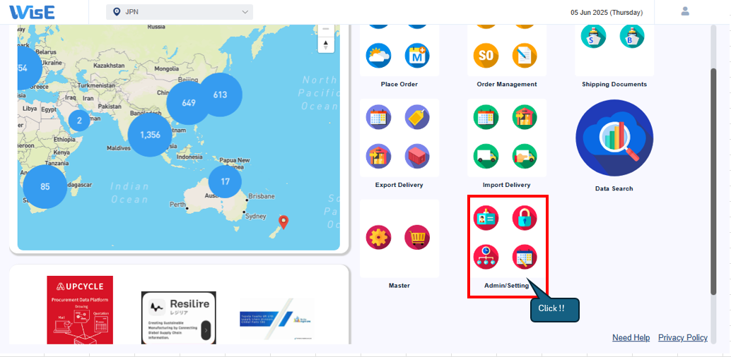 ①WisE TOP画面 > Admin/Setting